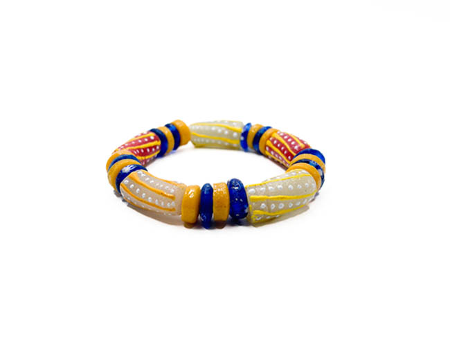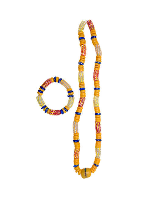 Stylish unisex beaded set with a matching necklace and bracelet of vibrant handmade Ghanaian beads, perfect for completing any outfit.