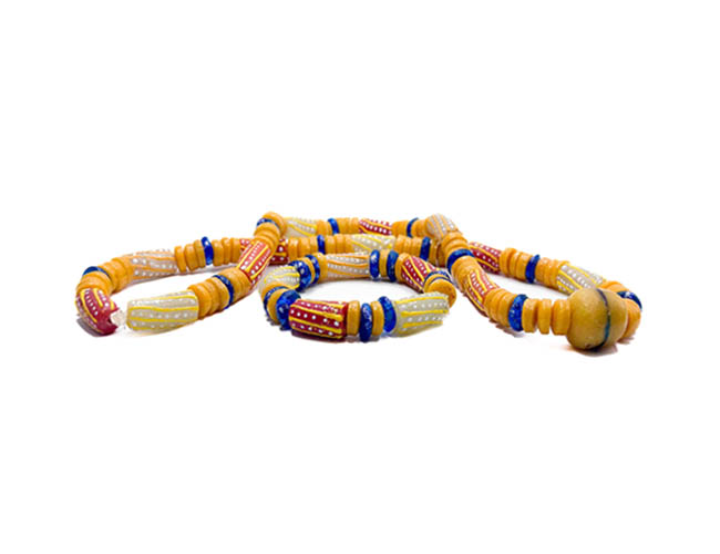 Crafted from vibrant recycled glass beads sourced from Ghana, this stylish unisex necklace and bracelet set embraces slight imperfections that make each piece uniquely yours.