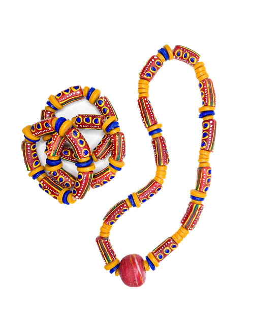 Authentic Ghanaian craftsmanship comes to life in this handmade necklace and bracelet set. Made from recycled glass beads, each piece is versatile and perfect for gifting to both women and men. Layer for a bold look or wear individually for subtle elegance.