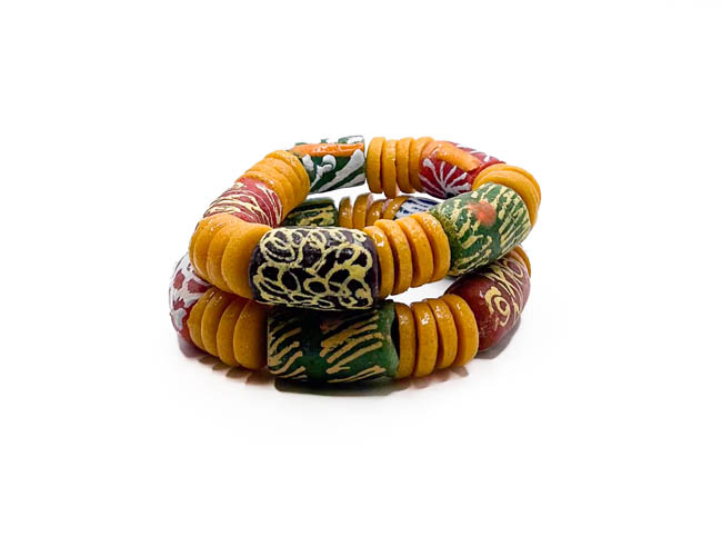 Versatile and stylish, this unisex handmade Ghanaian beaded bracelet features a vibrant mix of colourful glass beads. Perfect for everyday wear, it adds a playful pop of colour to any outfit.