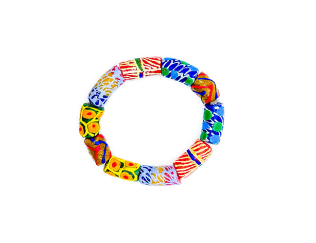 Unisex handmade bracelet featuring vibrant mixed colour recycled glass beads from Ghana. Ideal for everyday wear or layering for a stylish artisanal touch. Slight imperfections may occur due to the recycled materials.